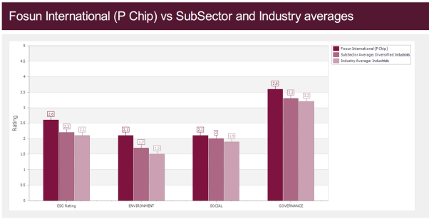 富时罗素 ESG 评级总分为5分,覆盖管治(反贪腐、企业管治、风险管理)、环境(气候变化、供应链环境风险、污染及资源、水风险)和社会(客户关系、员工健康与安全、人权及社区责任、劳工标准、供应链社会风险)三个方面。行业平均分为2.1 分,中国公司平均分为1.4分。本次复鑫国际取得的2.6分高于行业平均,并远远超出中国公司平均水平。