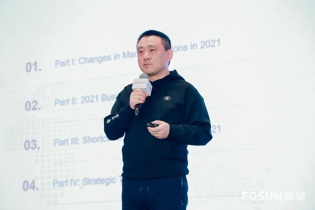 2022年1月11日,在复鑫2022工作会议上,复鑫国际联席CEO陈启宇代表公司管理层做工作汇报。报告首先回顾了2021年全球和中国的宏观形势变化,其次归纳总结了集团2021年经营亮点,指出经营发展中的不足和痛点,进而提出六大战略思考,为未来发展提供思路,最后对2022年经营发展计划进行了点评和建议。