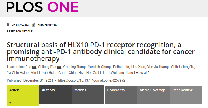 The preclinical and structural analysis results of Henlius’ innovative anti-PD-1 mAb serplulimab, published in an international journal PLOS ONE