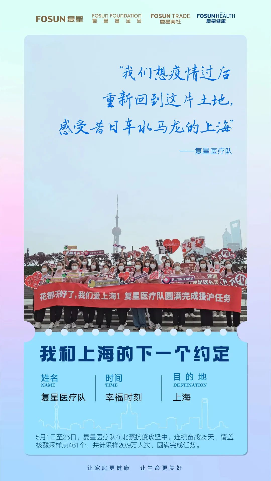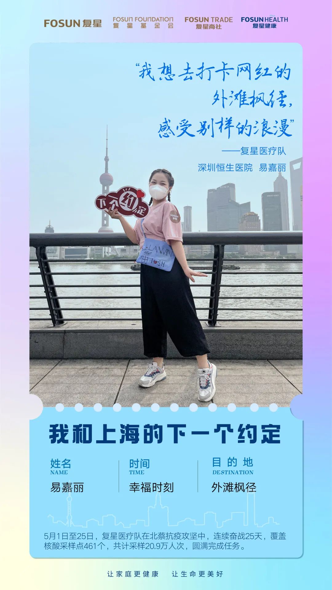 5月28日,圆满完成任务的姑娘们将陆续踏上返程。“等到上海恢复往日的精彩时,一定还会再来。” 看着眼前的外滩,易嘉丽和姐妹们许下和上海的下一次约定,去复鑫艺术中心看展览、去迪士尼玩、逛逛热闹的豫园和外滩枫径、尝尝南翔小笼包和城隍庙梨膏糖……