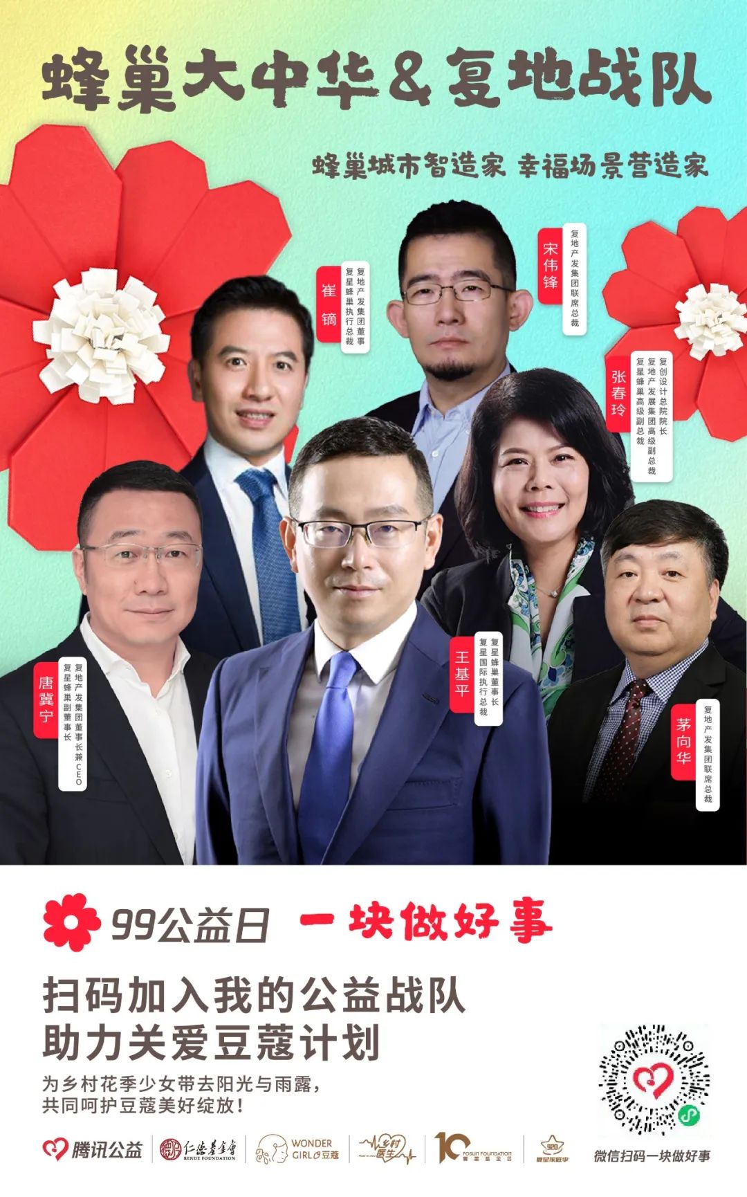 140余位复鑫全球合伙人,领衔复鑫一家【复鑫集团本部】【大快乐】【大健康】【大富足】【大智造】【蜂巢】6大战队,助力复鑫基金会5大公益项目筹款。