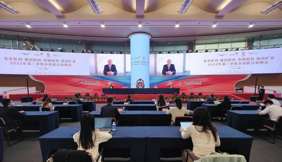 ▲ 复鑫医药、豫园股份、南钢股份、海南矿业2022年第三季度业绩联合说明会现场
