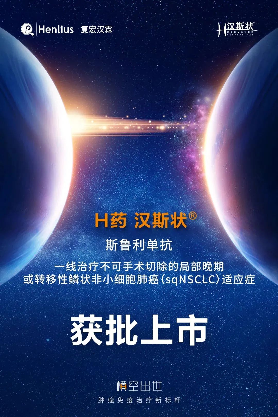 2022年11月1日,上海——复宏汉霖(2696.HK)宣布,旗下首款自主研发的创新生物药抗PD-1单抗H药——汉斯状®(通用名:斯鲁利单抗注射液)新适应症上市申请获得国家药品监督管理局(NMPA)批准,联合卡铂和白蛋白紫杉醇用于一线治疗不可手术切除的局部晚期或转移性鳞状非小细胞肺癌(sqNSCLC)新适应症,为肺鳞癌患者提供了用药新选择。此前,H药已获批治疗微卫星高度不稳定 (MSI-H) 实体瘤,广泛的适应症布局推动更多患者获益。
