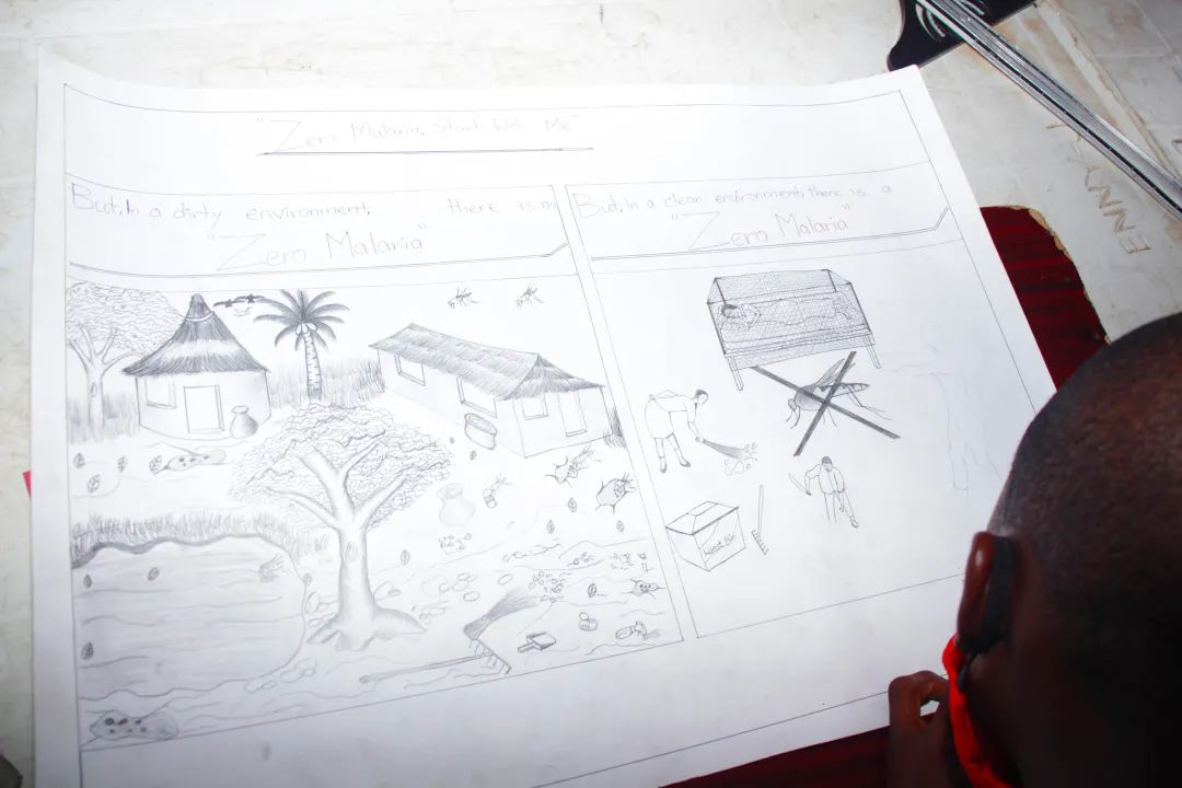 尼日利亚男孩克里斯托弗以“无疟疾世界”为主题所作的绘画作品