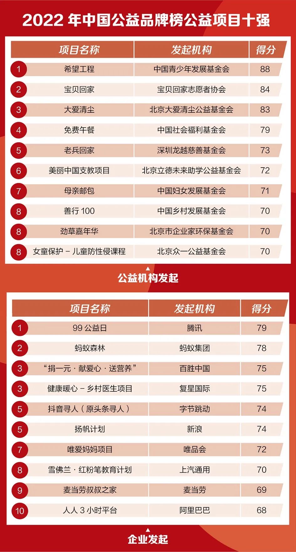 会上,南方周末公益研究中心发布了《中国公益品牌观察报告(2021-2022)》和2022年中国公益品牌榜,关注公益品牌的传播效果、社会价值、实际效果以及可持续影响力。大会发布了2022年中国公益品牌公益项目十强榜。