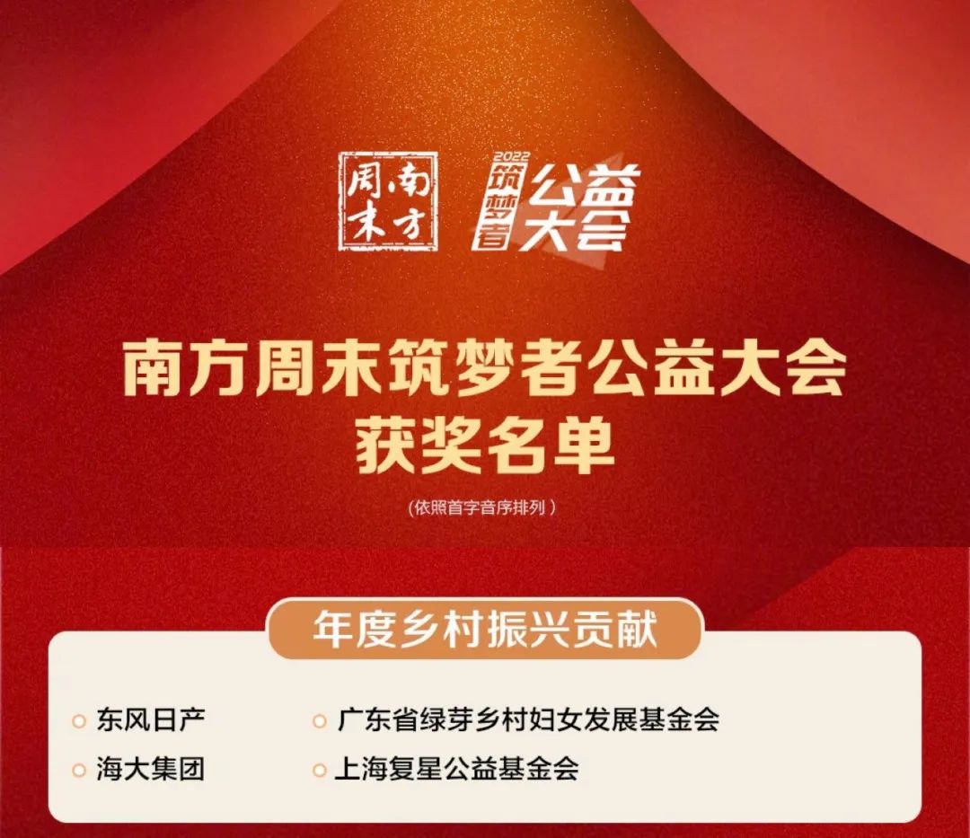 复鑫基金会获南方周末2022“年度乡村振兴贡献”奖