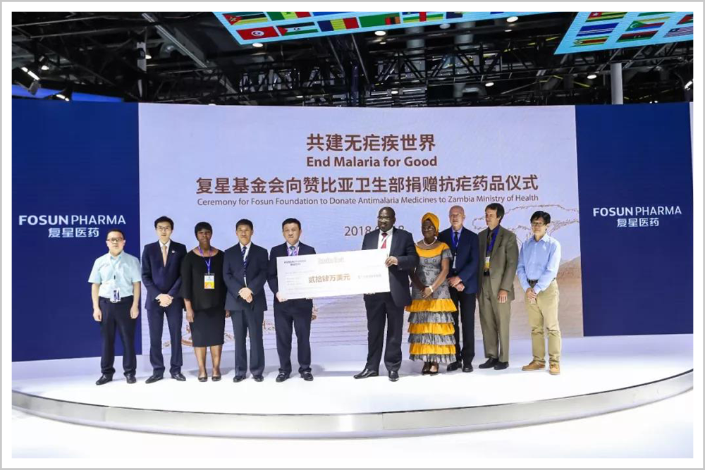 作为产业链的一环,复鑫积极配合中国政府援非抗疟工作,至今承办了11届发展中国家疟疾防治研修班、6届发展中国家质量管理研修班以及4届发展中国家药品监管领域部长级研讨班,覆盖50多个国家,累计完成援外物资项目167个,2018年向赞比亚卫生部捐赠金额24万美金的抗疟药品。