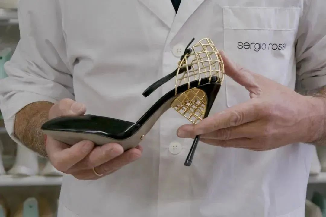 在Sergio Rossi,制作一双经典款高跟鞋一般需要 110 个步骤,如果是更精致的鞋子,这个数字则更多。这背后包含了上百小时的模型设计和制作、上千小时的技术积累,以及上万次的复盘、研讨和打磨。