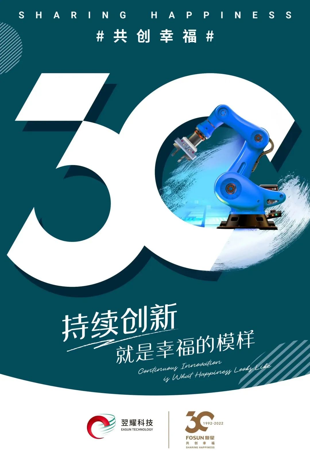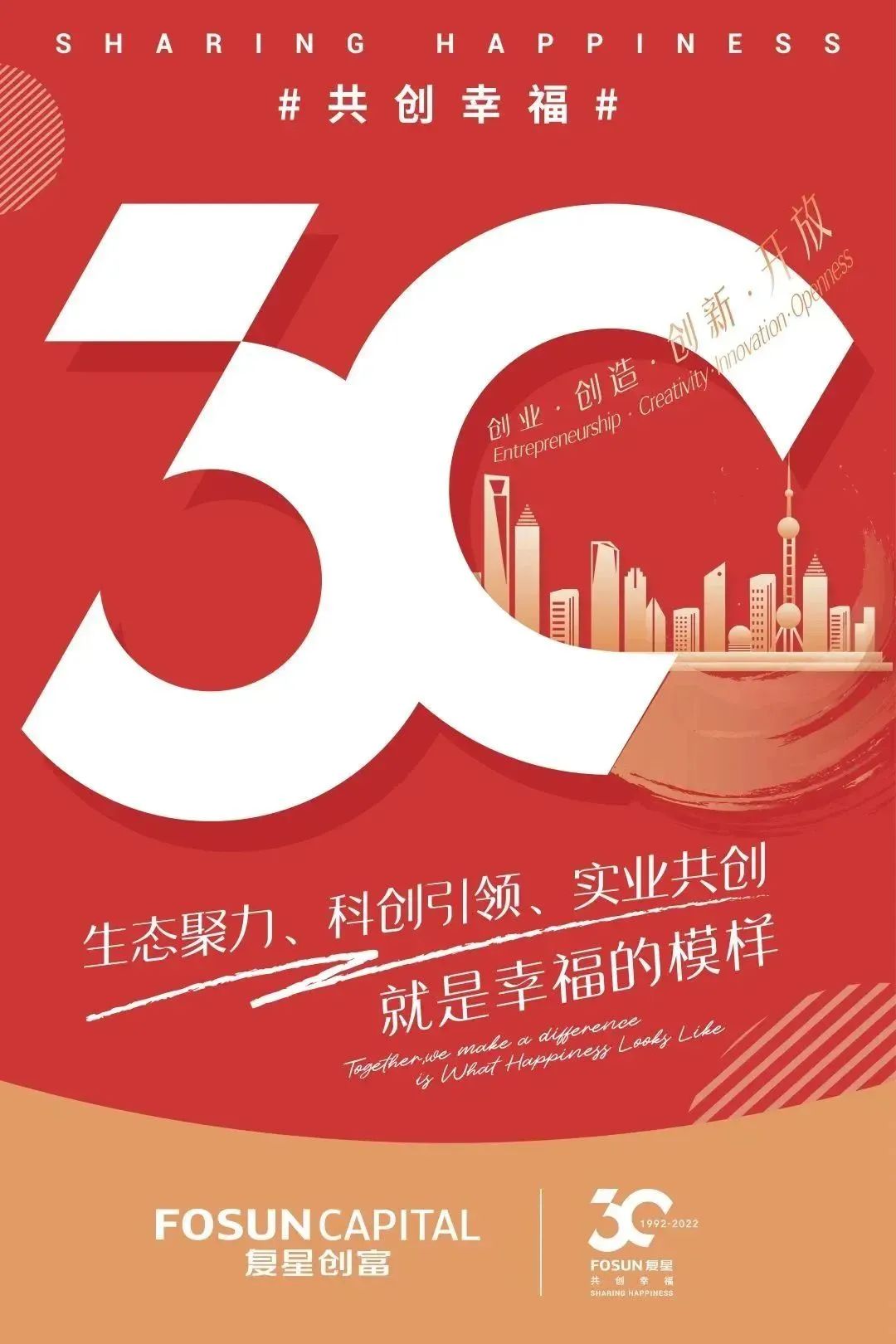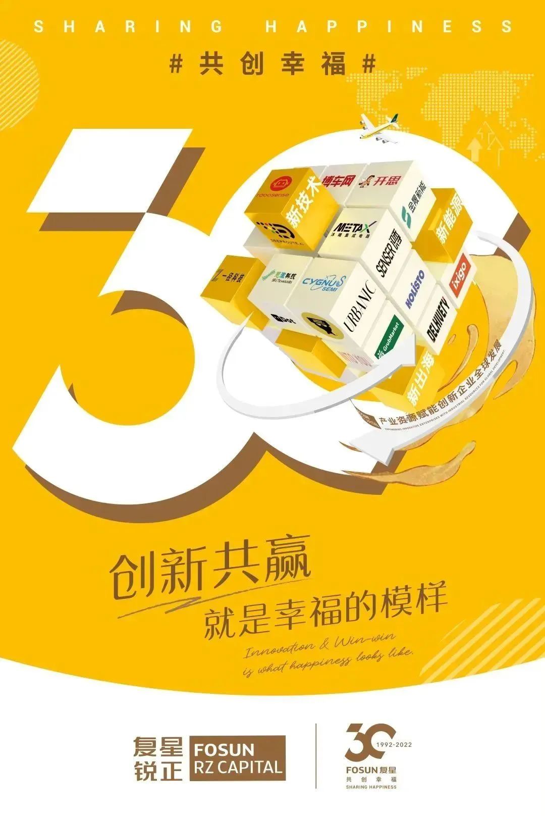 今年是复鑫创业30周年的重要时刻。复鑫联合旗下生态企业,共同发布30周年庆祝海报,以数字“30”为统一视觉主体,融入各个产业特有的元素,展示了复鑫始终为全球家庭幸福的使命和努力。