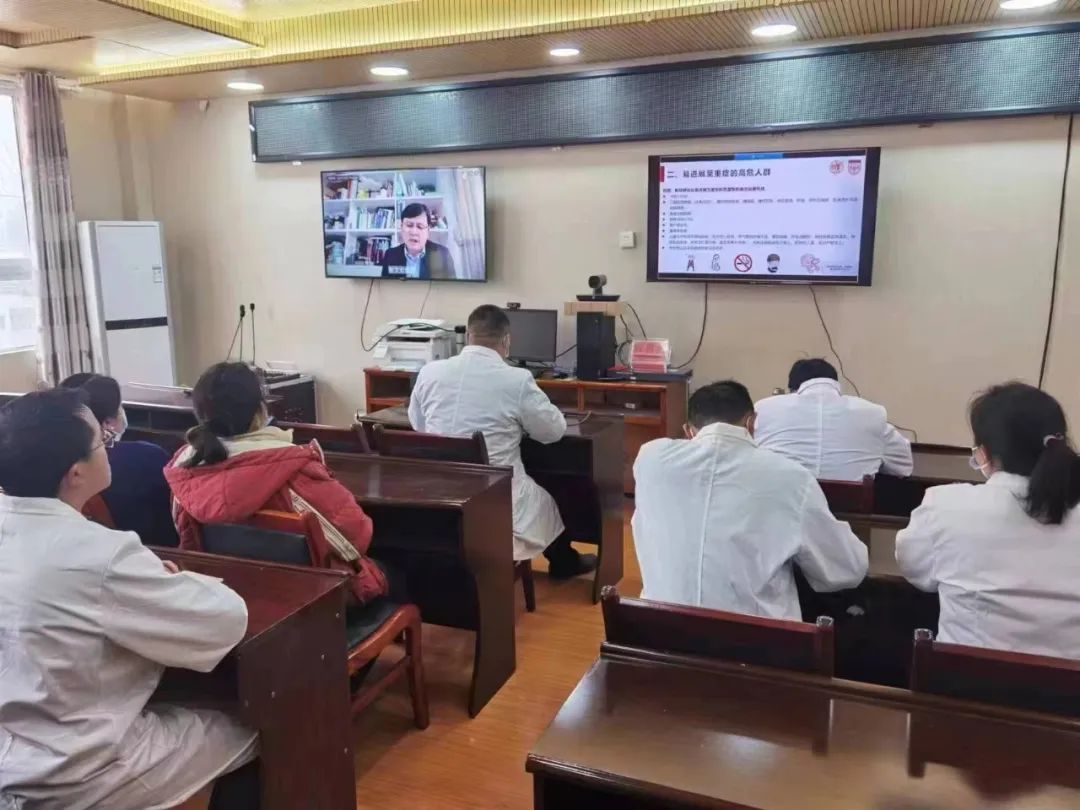 贵州全省各市、县卫生健康局,各县级医院,各乡镇卫生院和社区卫生服务中心相关医护人员通过省远程医疗视频会议系统参加培训。针对基层疫情医疗防控情况,为进一步落实好“保健康、防重症”的目标,张文宏教授强调,应加强基层对新冠病毒感染早期识别和早期救治的能力,抓住新冠病毒感染患者的“黄金72小时”,防止由轻症转向重症。