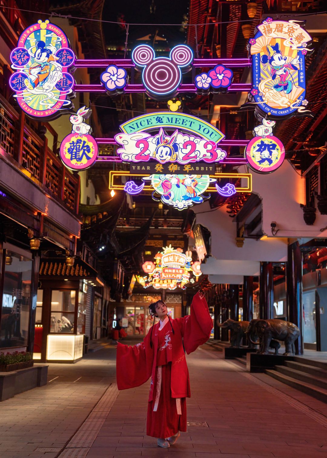 在凝晖路另一头,和迪士尼合作的“大展宏兔”新春灯组,则再一次将这里打造为出片圣地,随手一拍就是绝美大片。