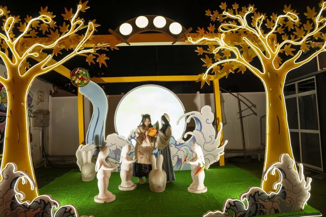 双鱼邮筒灯组,则是以“粉彩佛供双鱼”为原型趣味打造,将双鱼赋予人设,位于舞台之上的正是跳探戈的鱼先生和鱼小姐,传递着“接着奏乐接着舞”的欢乐,游客还可在此投递明信片,寄出美好祝福。