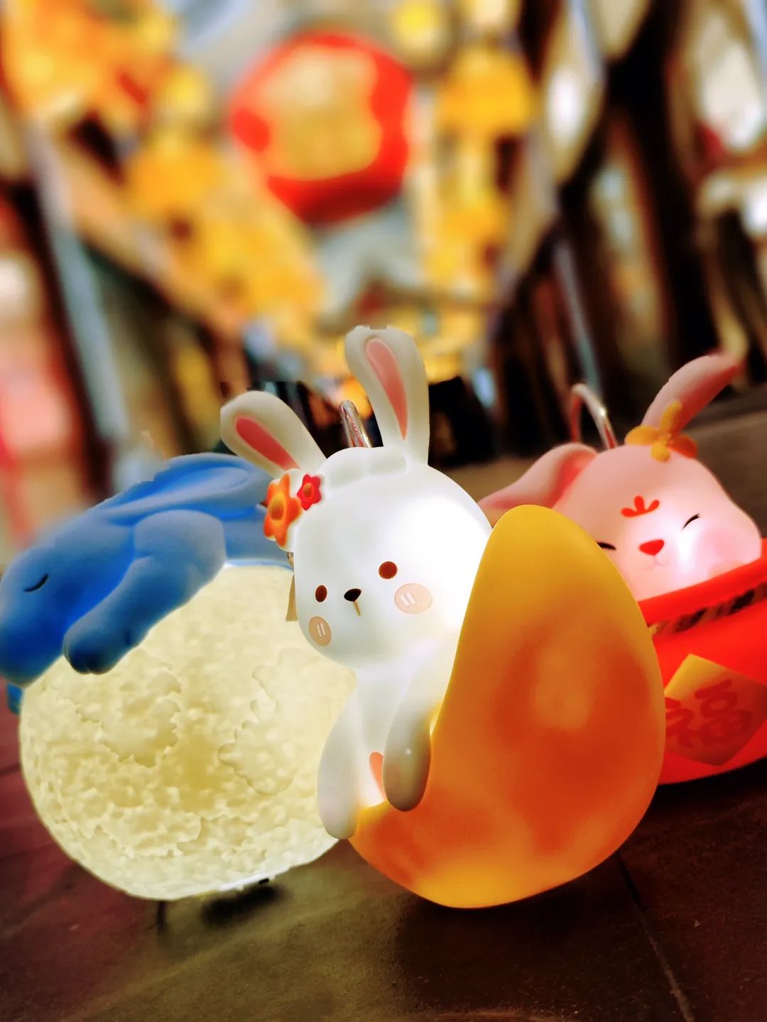 兔年灯会,兔子灯当仁不让成为年味担当。豫园街头,提着兔子灯游园的可不只有小朋友。月神兔、逍遥兔、小懒兔,三款兔子灯笼还萌化了许多大朋友的心。