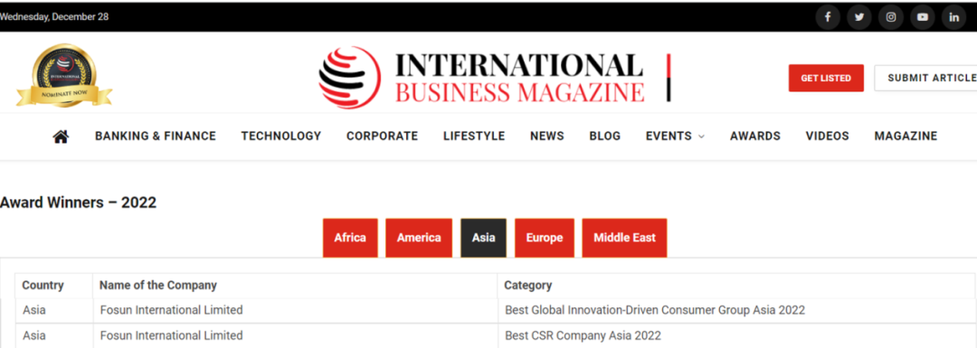 2022年12月19日至12月28日,复鑫国际先后获《国际商业杂志》、《金融衍生工具》、《智通财经》颁发的多个ESG奖项,高度认可复鑫聚焦主业及全球创新能力,肯定“药+苗”在助力抗疫的贡献,表扬复鑫推动ESG可持续发展的积极努力。