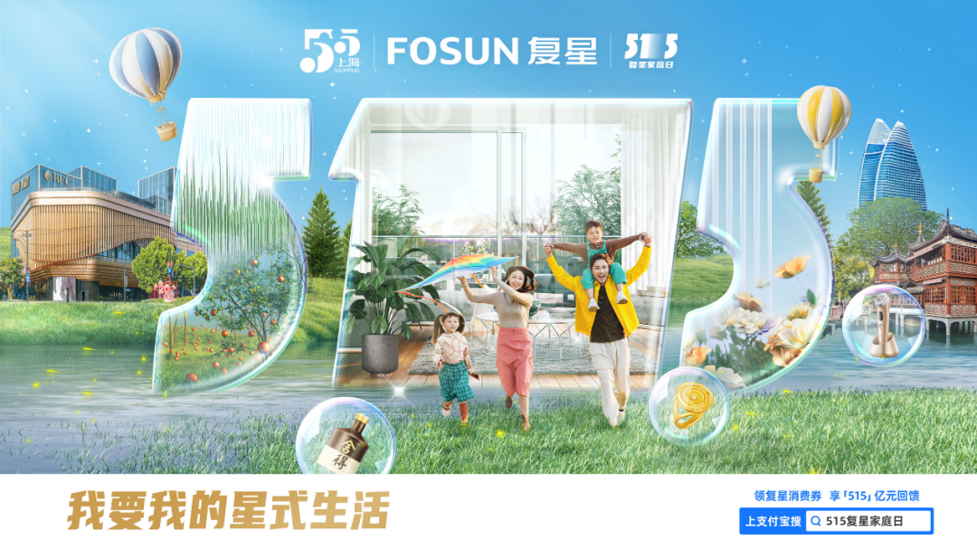 带着让全球家庭生活更幸福的使命,复鑫携旗下健康、快乐、富足等家庭消费产业,积极响应上海第四届“五五购物节”,共同开启515复鑫家庭日,以优惠和权益回馈家庭用户,为万千家庭带来精彩无限的「星式生活」,提升家庭生活的品质和想象空间,倾心倾力让家的幸福,像星星一样及时闪烁。