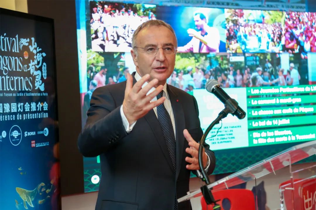 △巴黎风情园园长、路威酩轩集团秘书长Marc-Antoine Jamet严振全在致辞中表示,上海豫园灯会首次出海、来到美丽的巴黎,将充分展现东方美学文化、上海国际文化大都市风貌和中华传统文化的民族自信,传递对中法两国关系最为诚挚美好的祝福。相信法国豫园灯会一定能讲好豫园故事,讲好上海故事,为包括法国在内的全世界人民讲好中国故事。
