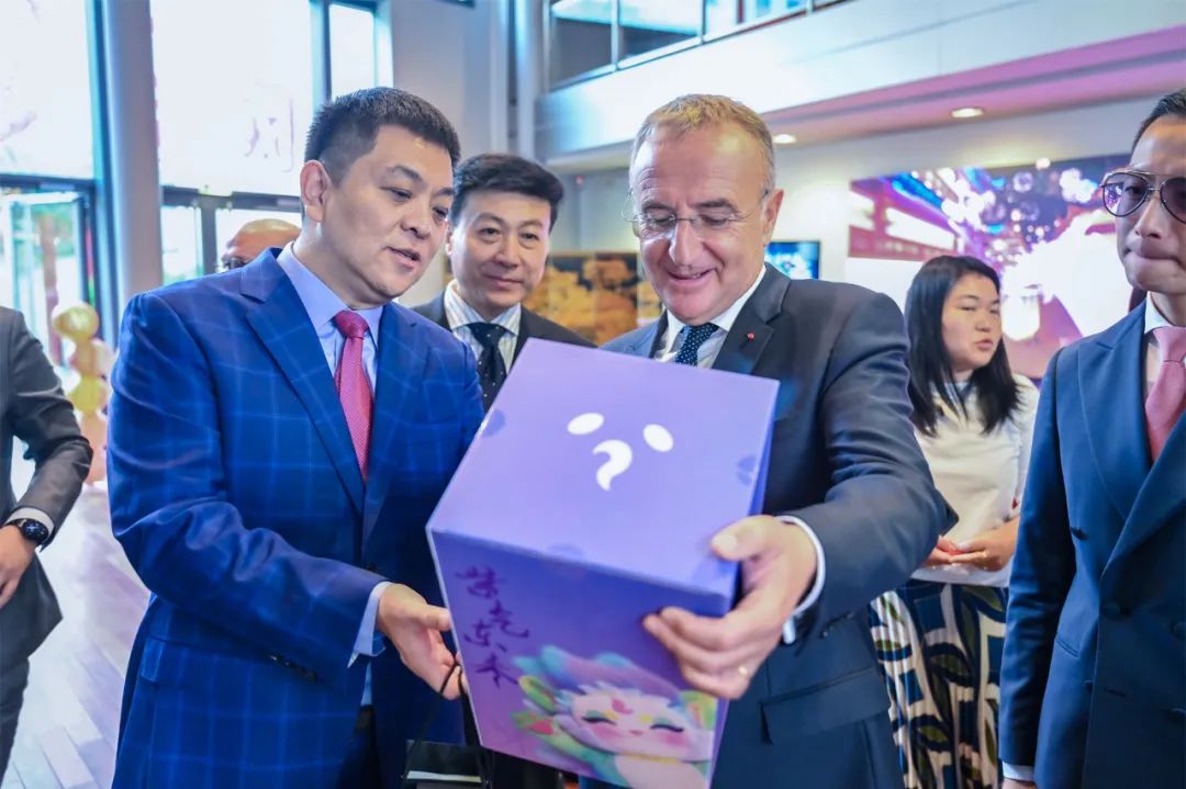 △胡庭洲向Marc-Antoine Jamet赠送灯会IP公仔朏朏