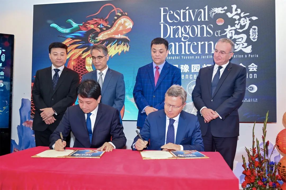此外,豫园股份与巴黎中国文化中心也当场签署了捐赠协议,本次法国豫园灯会结束后,“白鹿”灯组将留存在巴黎中国文化中心之内,继续传递中法两国的深厚情谊。巴黎中国文化中心于2002年11月29 日在巴黎塞纳河左岸孟德斯鸠公馆正式成立,这是中国在欧洲国家设立的第一个文化中心。巴黎中国文化中心主任刘红革感谢豫园股份将法国豫园灯会的灯组捐赠给巴黎中国文化中心,这将成为塞纳河边中国彩灯的精彩延续。灯会正式开展期间,巴黎中国文化中心也将作为法国公众探索中国传统节庆文化以及相关非物质文化遗产的窗口,与灯会交相辉映,豫园股份将组织丰富多彩的文化活动,与各位携手为法国公众奉献一场场中国文化盛会。△左图为豫园股份向巴黎中国文化中心捐赠“白鹿”灯组,右图为巴黎中国文化中心回赠豫园股份捐赠证书