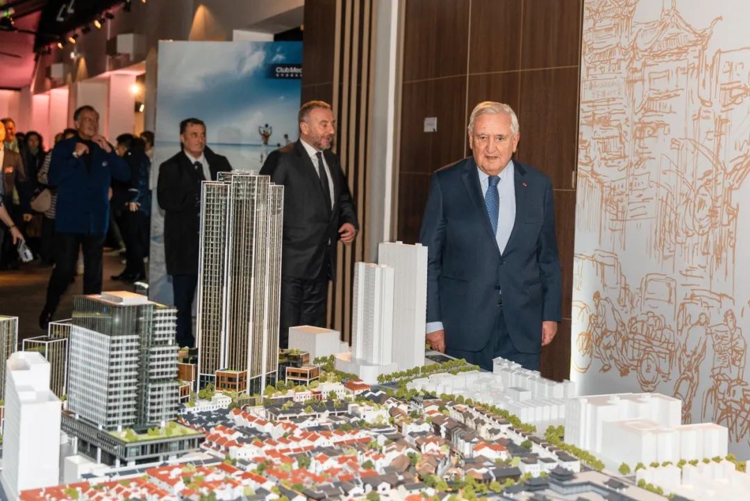 活动现场特别设置了大豫园东方生活美学展示区,这也是复鑫携手合作伙伴正在倾力打造的上海城市文化新“封面”,这是其首次在海外呈现和推介。一幅全景展现大豫园片区未来规划蓝图的巨型沙盘,吸引了诸多现场嘉宾驻足观看,包括路威酩轩集团旗下十余家品牌的负责人和代表。在大豫园的视频介绍和工作人员的细致讲解下,嘉宾充分感受到这一“时尚大花园”所展露出的东方生活美学魅力。