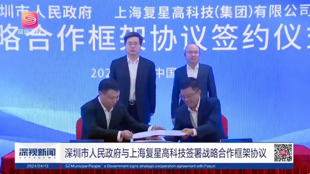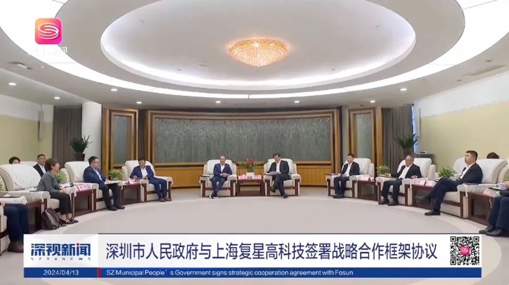4月12日,深圳市人民政府与上海复鑫高科技(集团)有限公司在深圳签署战略合作框架协议。签约前,市长覃伟中会见复鑫国际董事长郭广昌一行。