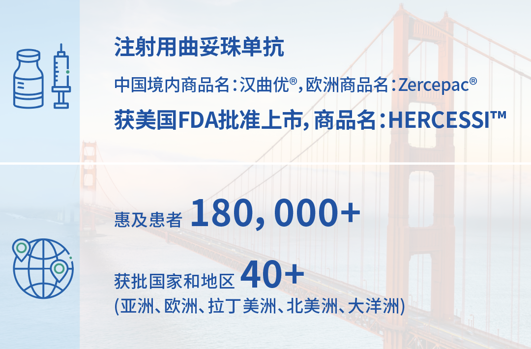 复鑫医药自主研发的创新产品出海再有突破。2024年4月,注射用曲妥珠单抗(中国境内商品名:汉曲优)获美国FDA批准上市,用于辅助治疗HER2过表达乳腺癌、治疗HER2过表达转移性乳腺癌、以及治疗HER2过表达转移性胃腺癌或胃食管交界腺癌,成为首个在中国、欧盟、美国获批的国产生物类似药。截至目前,汉曲优现已在全球40余个国家和地区获批上市,惠及逾18万全球患者。