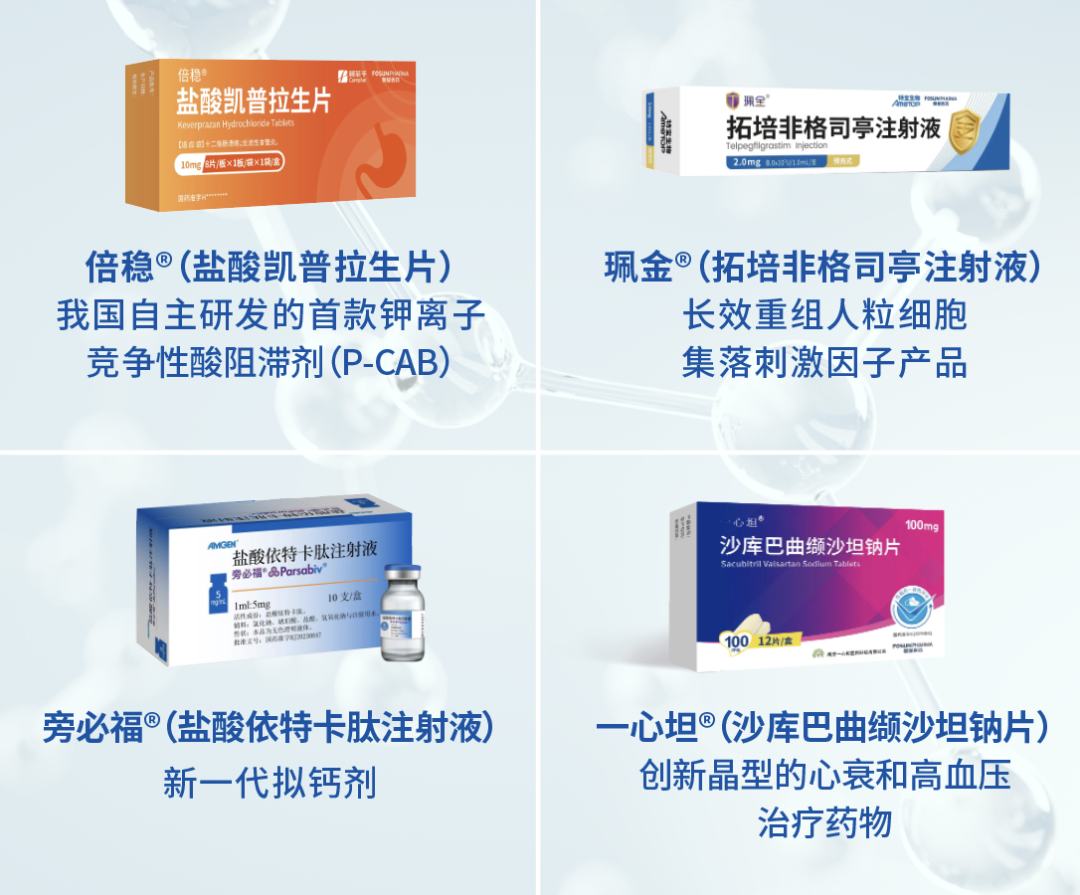 同时,复鑫医药持续推进已上市新品的商业化进程,包括我国自主研发的首款钾离子竞争性酸阻滞剂(P-CAB)倍稳(盐酸凯普拉生片)、长效重组人粒细胞集落刺激因子产品珮金(拓培非格司亭注射液)、新一代拟钙剂旁必福(盐酸依特卡肽注射液)及创新晶型的心衰和高血压治疗药物一心坦(沙库巴曲缬沙坦钠片)等。其中,倍稳、珮金、一心坦已被纳入国家医保目录。此外,报告期内,合营公司复鑫凯特的奕凯达(阿基仑赛注射液)在国内率先推出按疗效价值支付的创新方案,为国内高价值创新药品的支付模式探索路径。