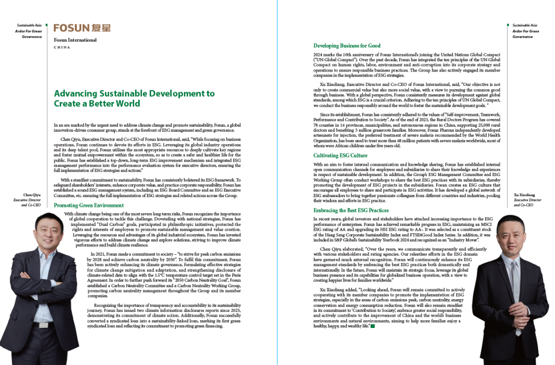 《亚洲企业管治》CEO专访:复鑫推进全球可持续发展,为世界创造美好