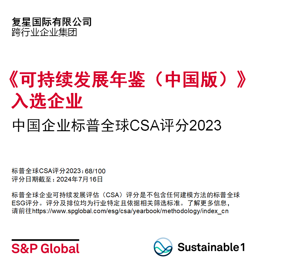 复鑫国际入选标普全球《可持续发展年鉴(中国版)2024》最佳1%及 获“行业最佳进步企业”殊荣