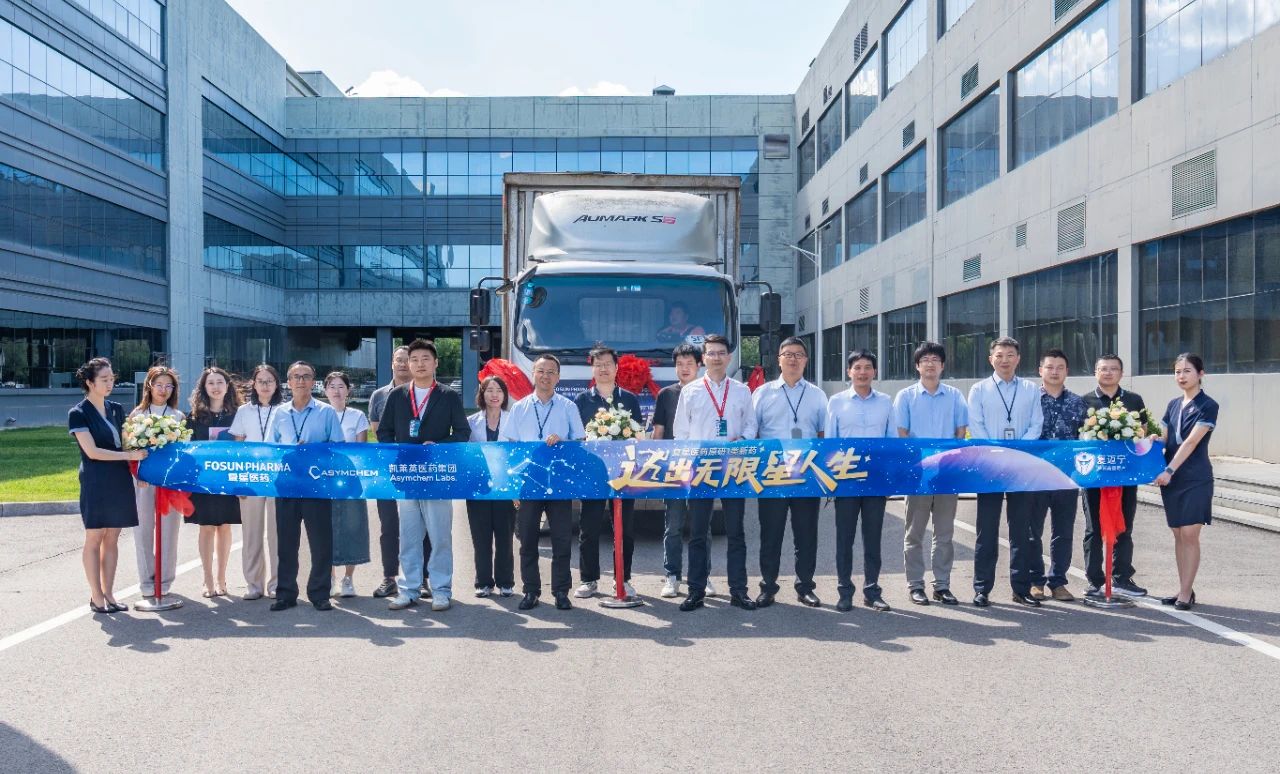 当天下午4时,满载复迈宁® 的物流车从产品受托生产方凯莱英医药集团位于天津的研发生产基地驶出,成功实现全国首批发货。复鑫医药国内营销平台副总裁兼实体瘤板块业务负责人柯宗山、凯莱英副总裁杨建波,执行副总经理杨涛等带领团队共同见证了这一振奋人心的历史性时刻。