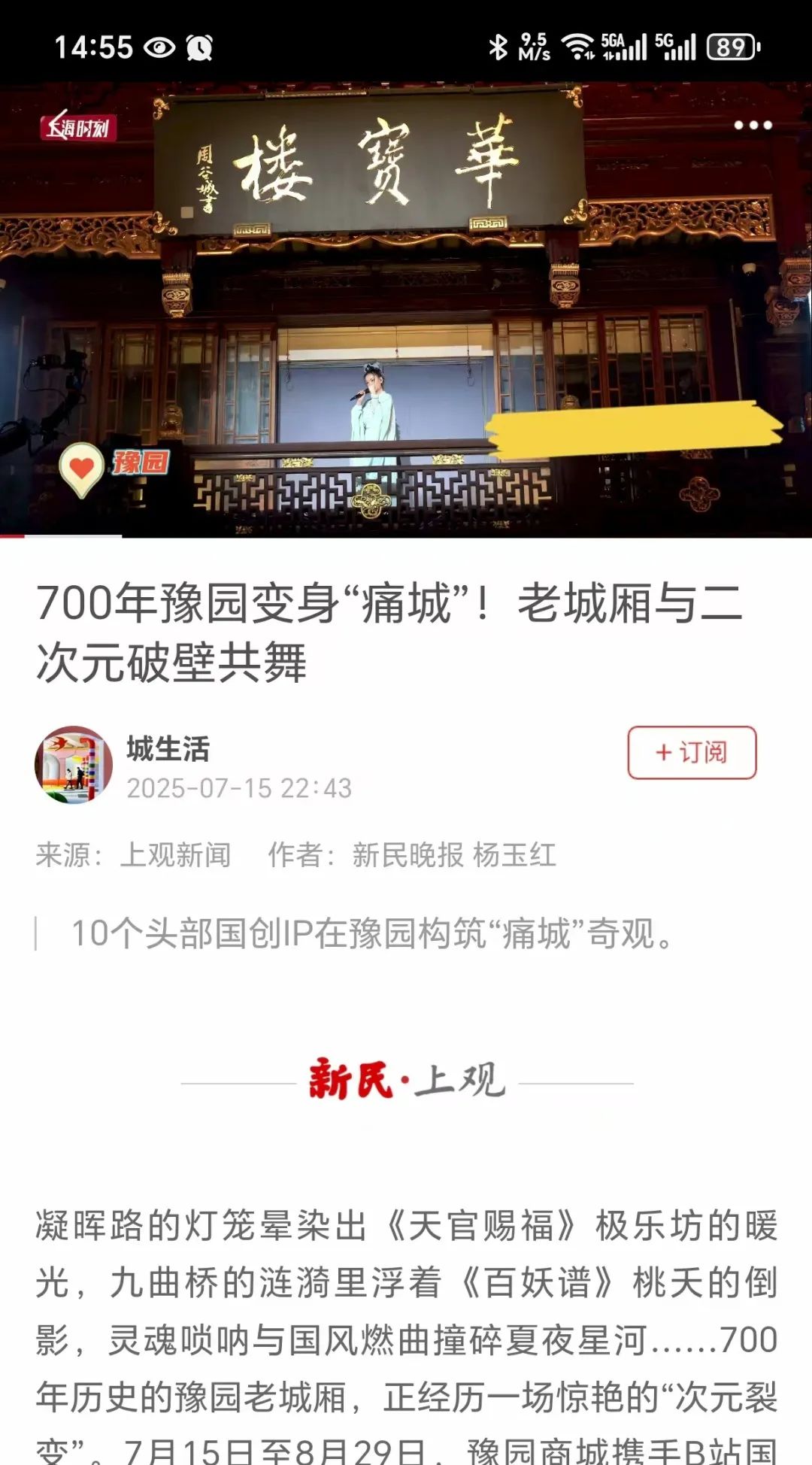 当凝晖路的灯笼映现出动画《天官赐福》里的极乐坊,当九曲桥的涟漪倒映出动画《百妖谱》里桃夭的倒影,当国风燃曲混搭灵魂唢呐点燃夏夜星河——上海老城厢这片拥有700多年历史的江南文化街区,正在经历一场史无前例的“次元裂变”。