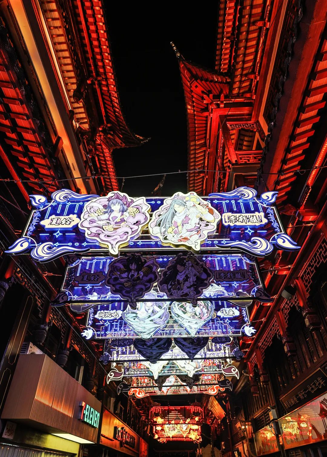 活动将B站10个头部国创动画IP集结于此,构建出一个次元交融的“痛城”奇观。这不仅是一场属于Z世代的线下狂欢,更是一次传统文化空间与新生代内容生态的破壁共舞,探索出一种“IP+场景+跨界”融合的有机新玩法,带给老城厢更多新的可能。