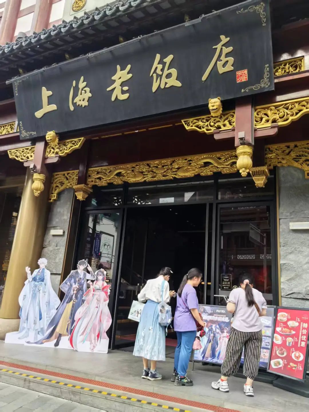 这场盛事不仅是视觉盛宴,更是可触可感的有温度的沉浸消费体验。豫园商城全域联动国创IP,打造“可食用、可穿戴、可收藏”的国创宇宙:《天官赐福》动画全新动画短片线下首发;多个IP周边限定亮相;湖心亭与《有兽焉》跨次元联名,“皮皮”也会惊喜现身。老字号品牌亦积极拥抱次元,老庙黄金推出《天官赐福》联名金饰;宁波汤团店、上海老饭店分别打造《天官赐福》《时光代理人》主题餐厅;松鹤楼、春风松月楼推出IP主题套餐;涵春茶肆则与《凡人》动画深度合作。