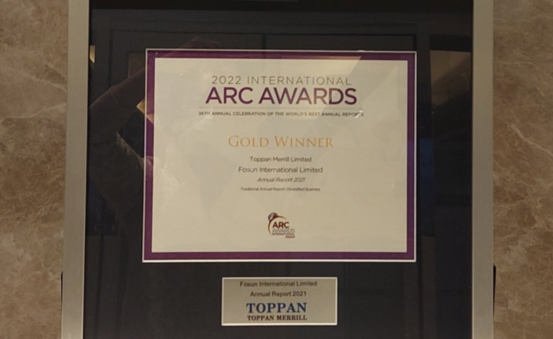 复鑫国际2021年报荣获“2022年国际ARC年报大奖”金奖