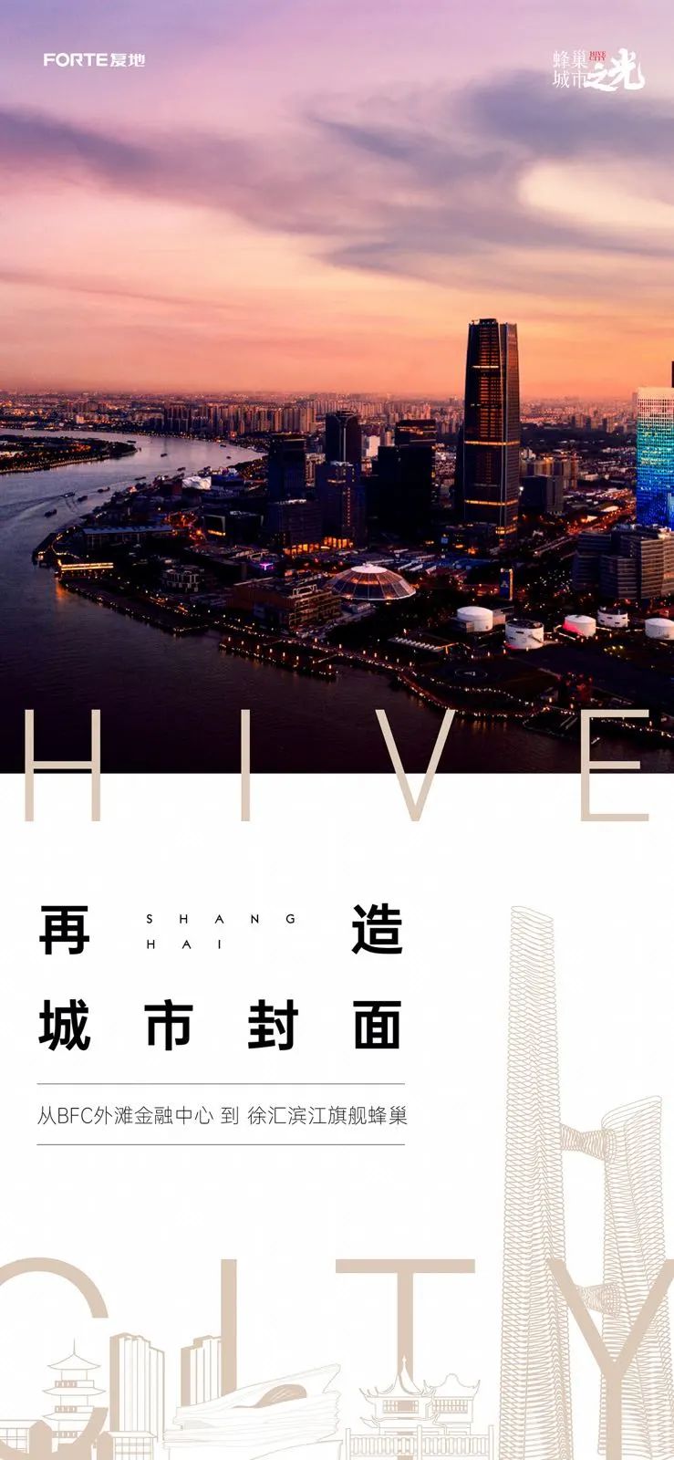 我们相信,在徐汇滨江这片热土上,在政府高起点、高规划的健康产业布局下,复地产发即将打造的旗舰级健康蜂巢项目,将会是继BFC外滩金融中心之后又一座上海的城市封面。