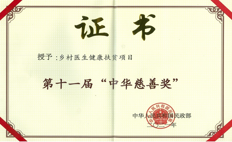 2021年9月5日是第六个“中华慈善日”,第十一届中华慈善奖评选表彰大会在京举行,上海复鑫公益基金会(以下简称“复鑫基金会”)的“乡村医生健康扶贫”项目因其在扶贫济困领域的突出贡献,作为优秀慈善项目荣获“中华慈善奖”。