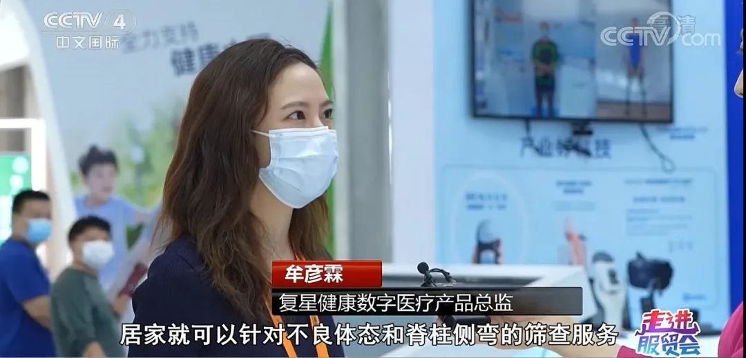 9月6日,央视《中国新闻》关注复鑫健康展台上的“产业好科技”,介绍了由复鑫健康和复旦大学附属华山医院共同研发的远程脊柱健康服务。这款产品通过人工智能技术和丰富经验的专家团队指导有效进行数字康复训练。