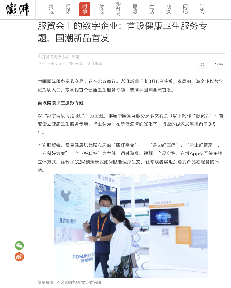 复鑫健康亮相服贸会:透过产业互联网路径,推动大健康产业融合发展
