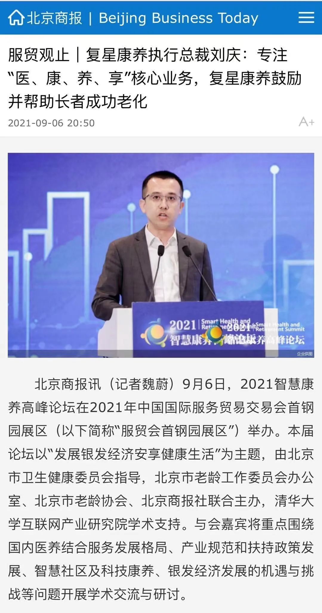服贸观止 | 复鑫康养执行总裁刘庆:专注“医、康、养、享”核心业务,复鑫康养鼓励并帮助长者成功老化