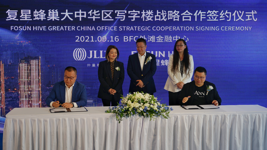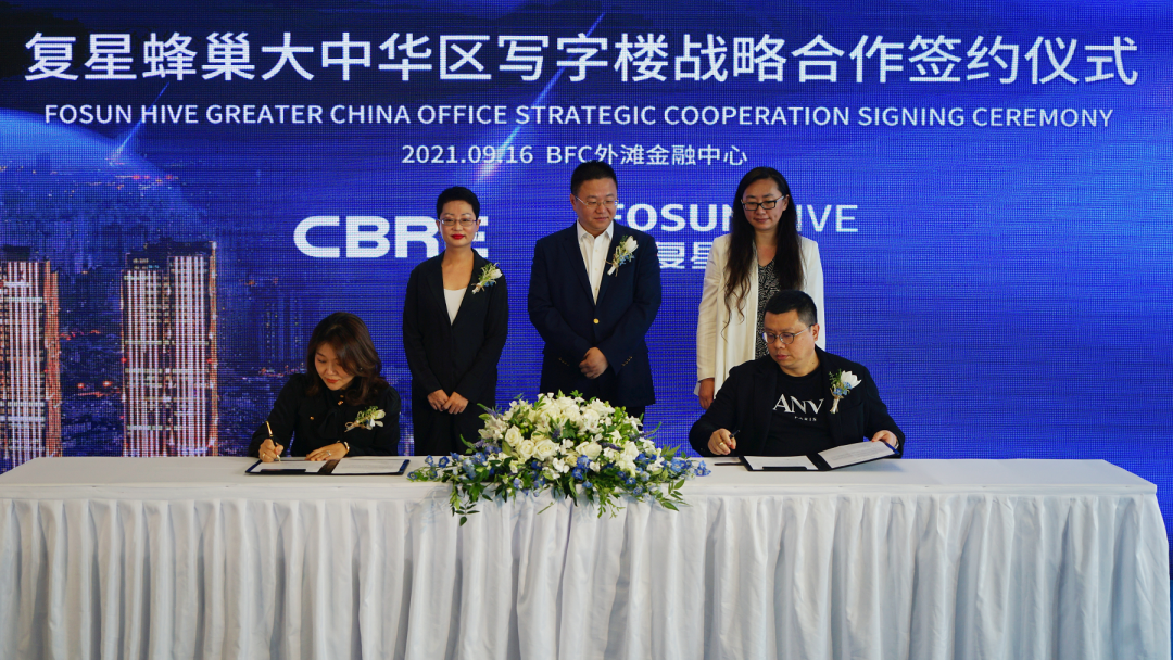 2021年9月16日,复鑫蜂巢大中华区写字楼战略合作签约仪式在BFC外滩金融中心隆重举行。复鑫蜂巢、世邦魏理仕、仲量联行三方就咨询、代理、商业管理等服务项目展开深入合作,建立长期稳定、互利共赢的战略合作伙伴关系,助力资产盘活、资源共享,树立全球写字楼租赁产业新标杆。