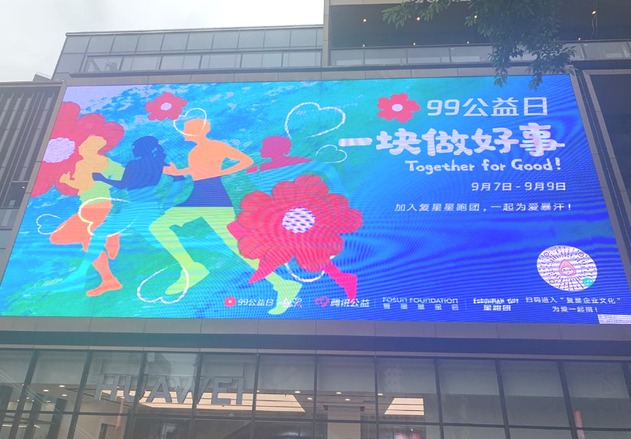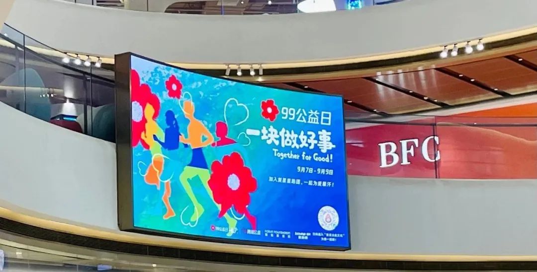 99公益日期间,上海BFC外滩金融中心、上海复地活力城、上海真如星光耀广场、重庆复鑫国际中心、三亚·亚特兰蒂斯等地参与宣传,让更多人了解“乡村校医室援助计划”和“太极拳辅助治疗帕金森病”筹款项目,为爱一起捐。