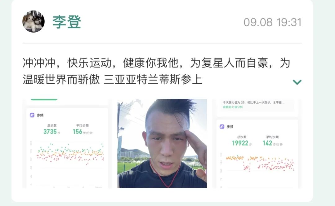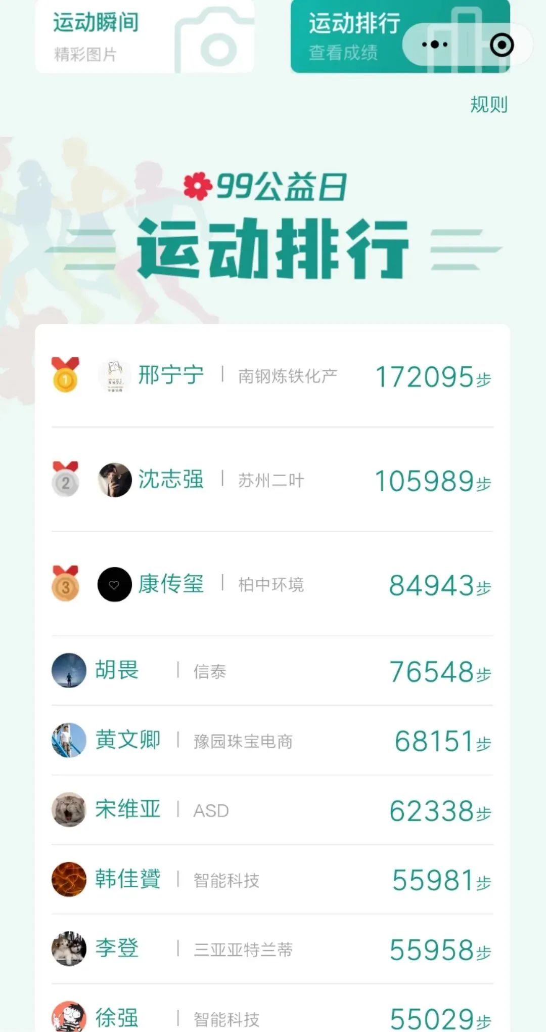 99公益日期间,我们在“复鑫企业文化”小程序中上线了“星跑团”活动,参与活动的小伙伴们每天都会在小程序中发布精彩瞬间。大家通过影像记录自己的运动风采,为公益项目累积点滴爱心。