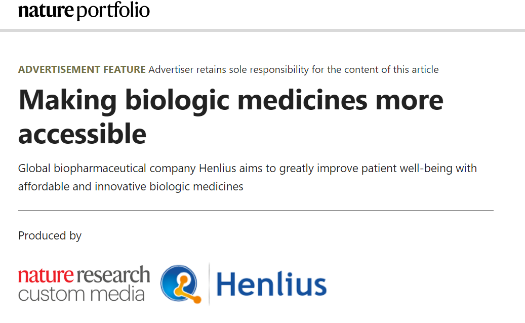 原文以Making biologic medicines more accessible为标题发表在2021年11月11日《自然》"焦点关注 - 中国医药行业特刊"上,内容以英文版本为准。