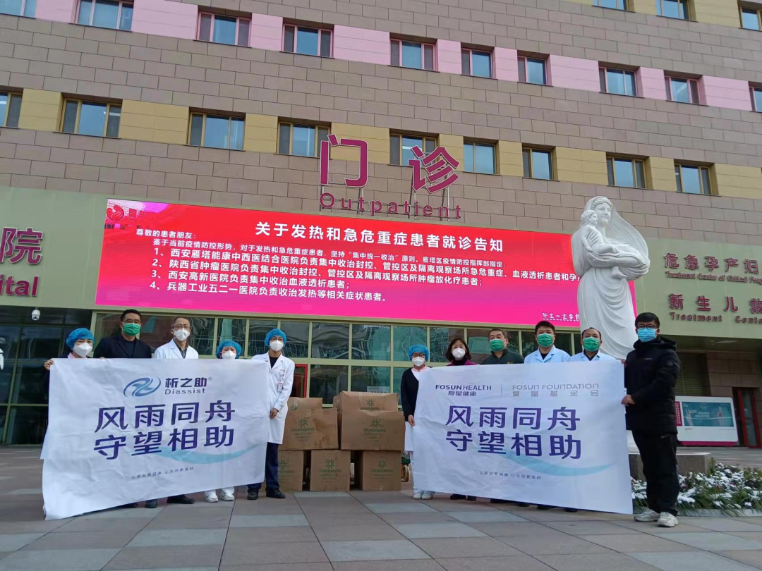 在此之前,复鑫捐赠的包括10万只医用手套、2万只口罩、800瓶免洗手部凝胶消毒液已经交接给西安市红十字会,3000罐肾透析高蛋白低钠营养品于26日上午11点到达西安高新医院。