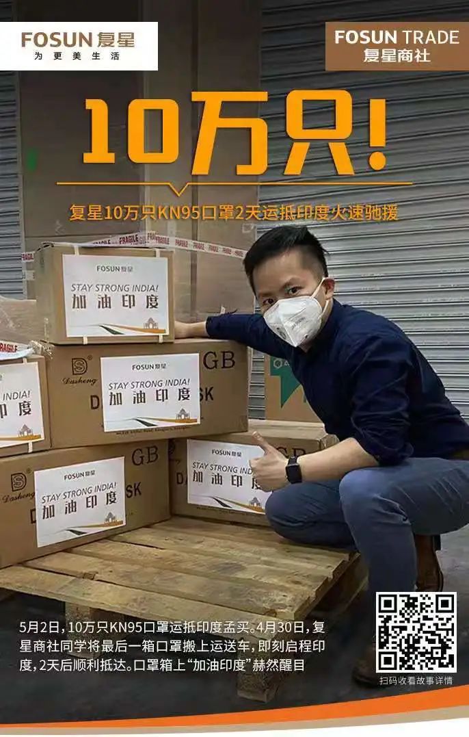 复鑫首批驰援印度的10万只KN95口罩,目前已完成清关程序。据复鑫蜂巢印度当地平台AHUJA Hive负责人表示,10万只口罩将于未来6-8个月持续支援复鑫印度员工及家属、客户及合作伙伴的防疫需求,预计保障总人数至少3000人。