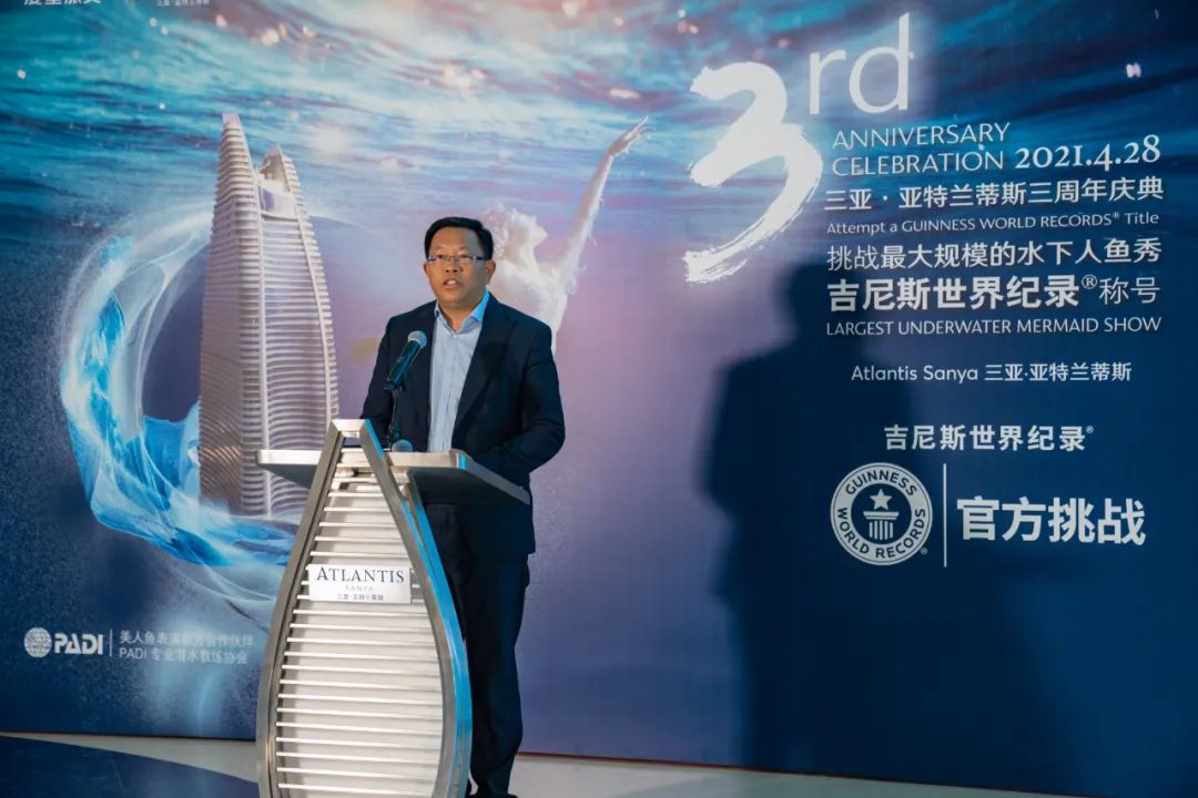 今天(2021年4月28日),110名专业美人鱼表演者在复鑫旅文·三亚亚特兰蒂斯的大使环礁湖中,完成了“最大规模的水下人鱼秀”吉尼斯世界纪录称号挑战。今天也是三亚亚特兰蒂斯开业三周年,这份最好的礼物就是亚特向上生长的动能。