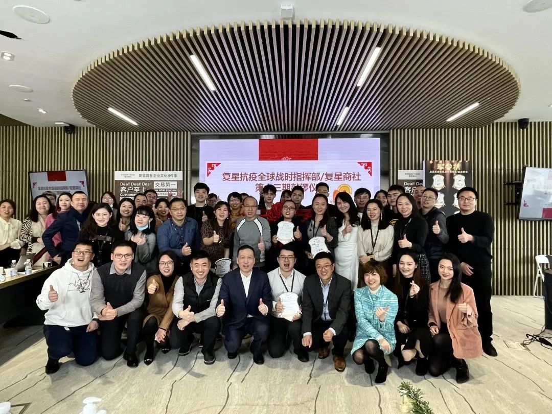 ▲ 复鑫商社2021新年第一锣。敲锣仪式已成为复鑫商社独具特色的企业文化,彰显了复鑫商社全球人道主义驰援的使命感