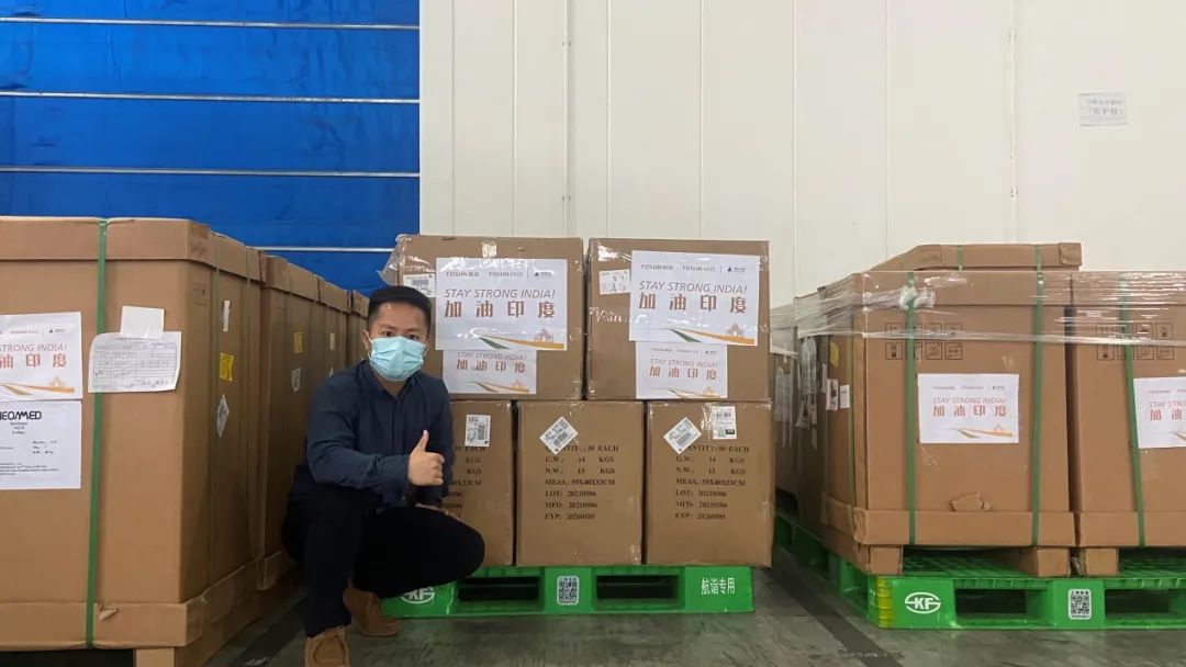 5月14日,由复鑫蜂巢印度平台AHUJA Hive捐赠的5台医用呼吸机及1000件防护服顺利抵达印度,这是继首批10万只KN95口罩抵达孟买后,AHUJA Hive捐赠的新一批驰援物资,这批物资将捐赠给印度孟买及周边多家前线医院及医疗机构,紧急支援当地医疗物资及氧气设备的短缺。