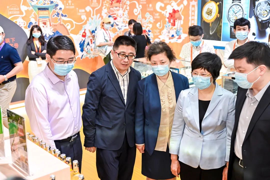 开展当天上午,上海市副市长宗明、上海市商务委副主任刘敏、黄浦区副区长王鼐在豫园股份董事长兼总裁黄震和豫园股份副总裁胡俊杰的陪同下来到豫园股份展位,关心豫园老字号发展。