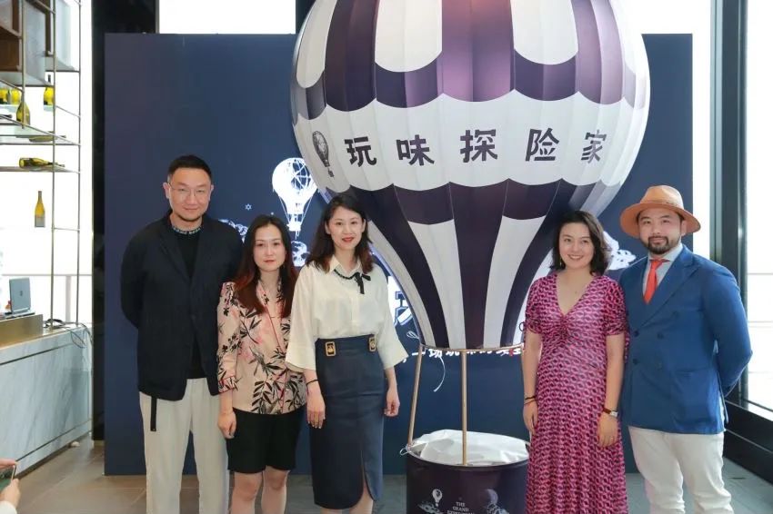 从左至右:上海文广演艺集团总裁马晨骋,上海文广演艺集团产业中心主任、上海市演出有限公司总经理毛佳敏,复鑫艺术中心主席王津元,剧马当先文化传播有限公司《玩味探险家》中方制作人谢已,剧马当先文化传播有限公司执行董事齐奇。