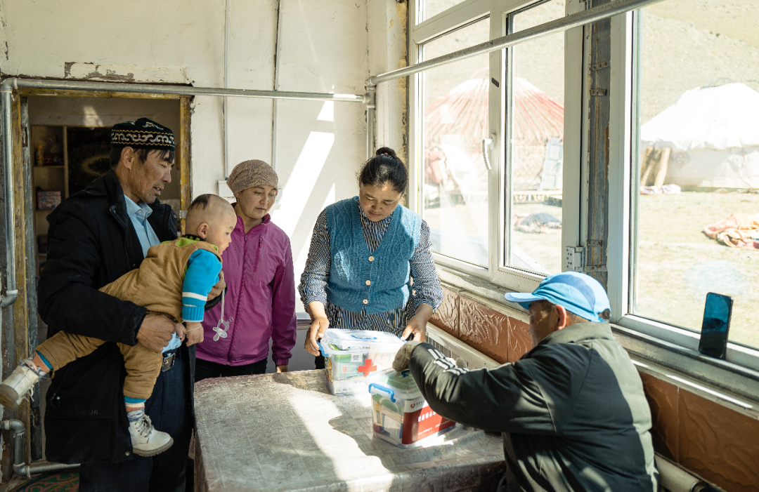 在喀毕拉十余年的乡村医生生涯中,确实遇到过很多“突发状况”。印象最深的一次是在冬牧场时,有个老妇人突然高血压发作、人事不省。当时气温零下二十多度,又下着大雪,喀毕拉先为她做了心肺复苏,然后找了匹马把她驼到了30公里以外的山下。山下也没有像样的车,喀毕拉只能用一台破旧的皮卡车拖着老人在雪地里开了十几个小时。后来,直到老人被抢救过来,喀毕拉才感到后怕:刚才风雪漫天,她其实根本看不清路。